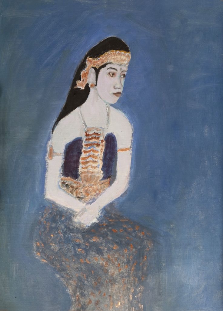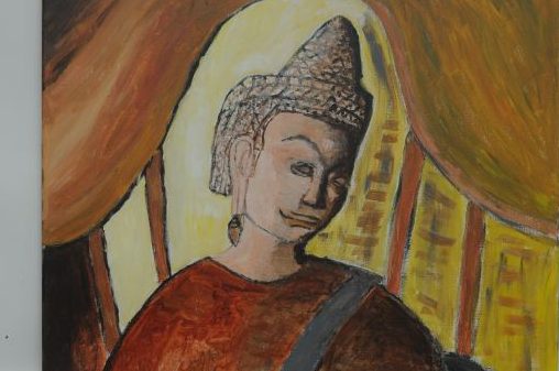 Afb. 20 “Rama lacht” Foto Angkor Wat “Images of Gods.” Ik heb op 1907-2022 per mail toestemming gekregen van Vittorio Roveda om de foto’s van zijn boek te mogen gebruiken als referentie voor mijn schilderijen.