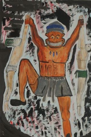 Afb.17 “Hanuman op het slagveld” Foto Angkor Wat “Images of Gods.” Ik heb op 19 juli 2022 per mail toestemming gekregen van Vittorio Roveda om de foto’s van zijn boek te mogen gebruiken als referentie voor mijn schilderijen.